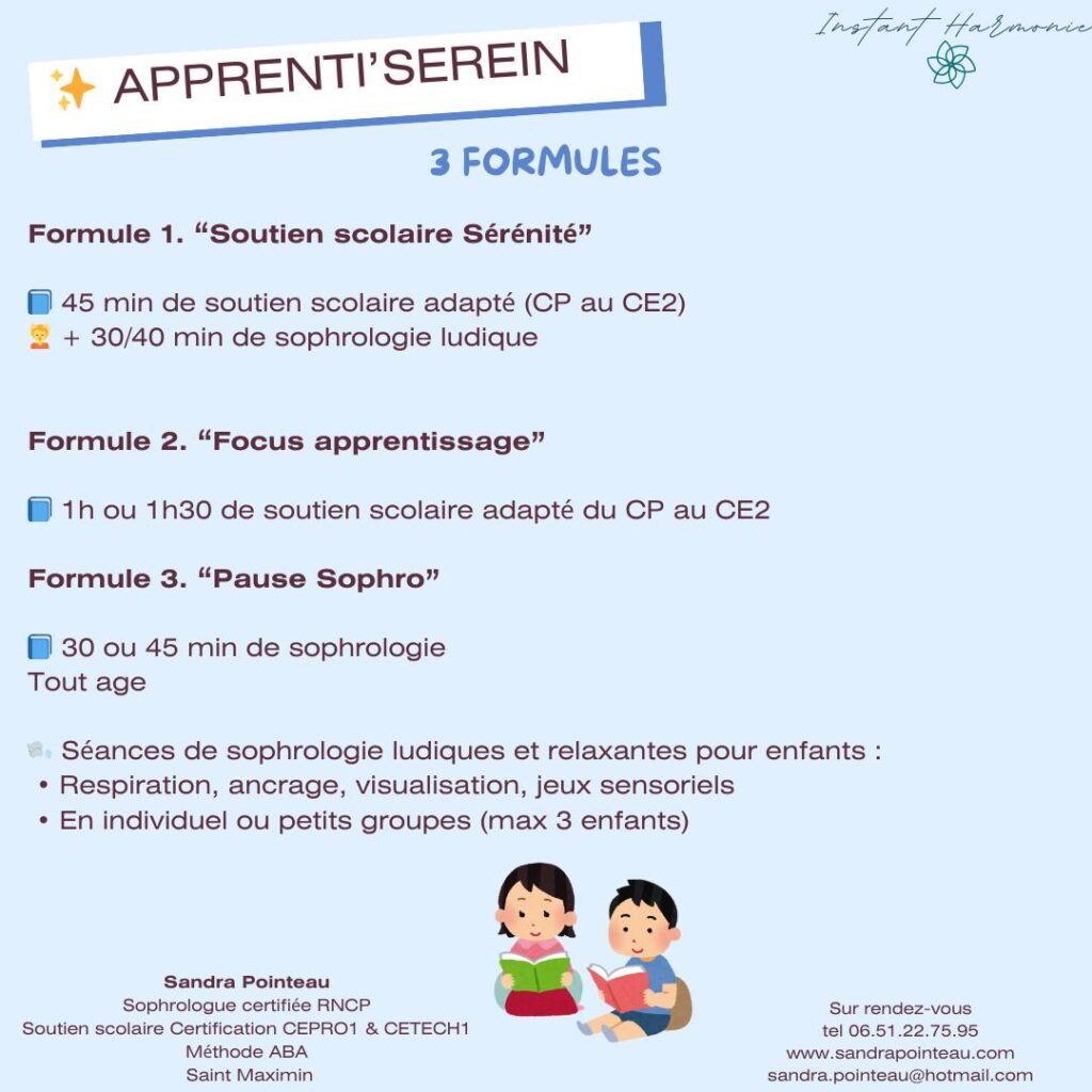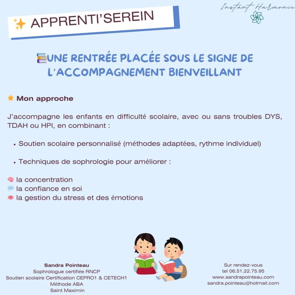 • Soutien scolaire personnalisé (méthodes adaptées, rythme individuel)